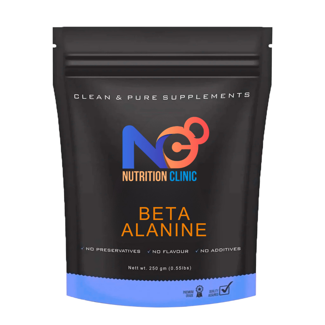 Nutrition Clinic Beta-Alanine Powder is a single-ingredient amino acid supplement that helps delay muscle fatigue, enhance endurance, and improve performance during high-intensity training — completely pure and unflavoured.