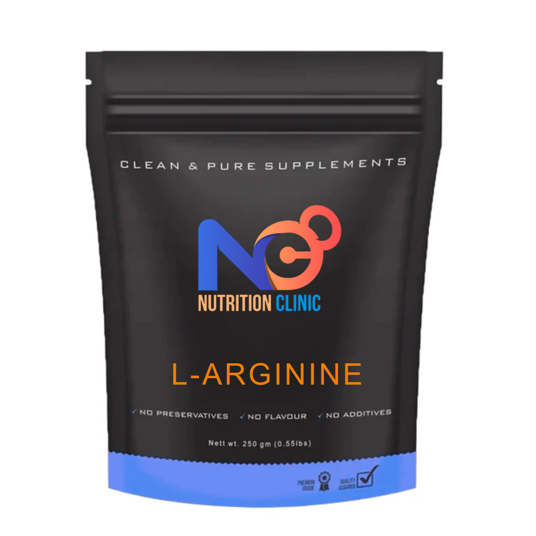 Nutrition Clinic L-Arginine is a single-ingredient amino acid supplement that supports muscle growth, endurance, and vitality by naturally boosting nitric oxide levels — completely pure and unflavoured.
