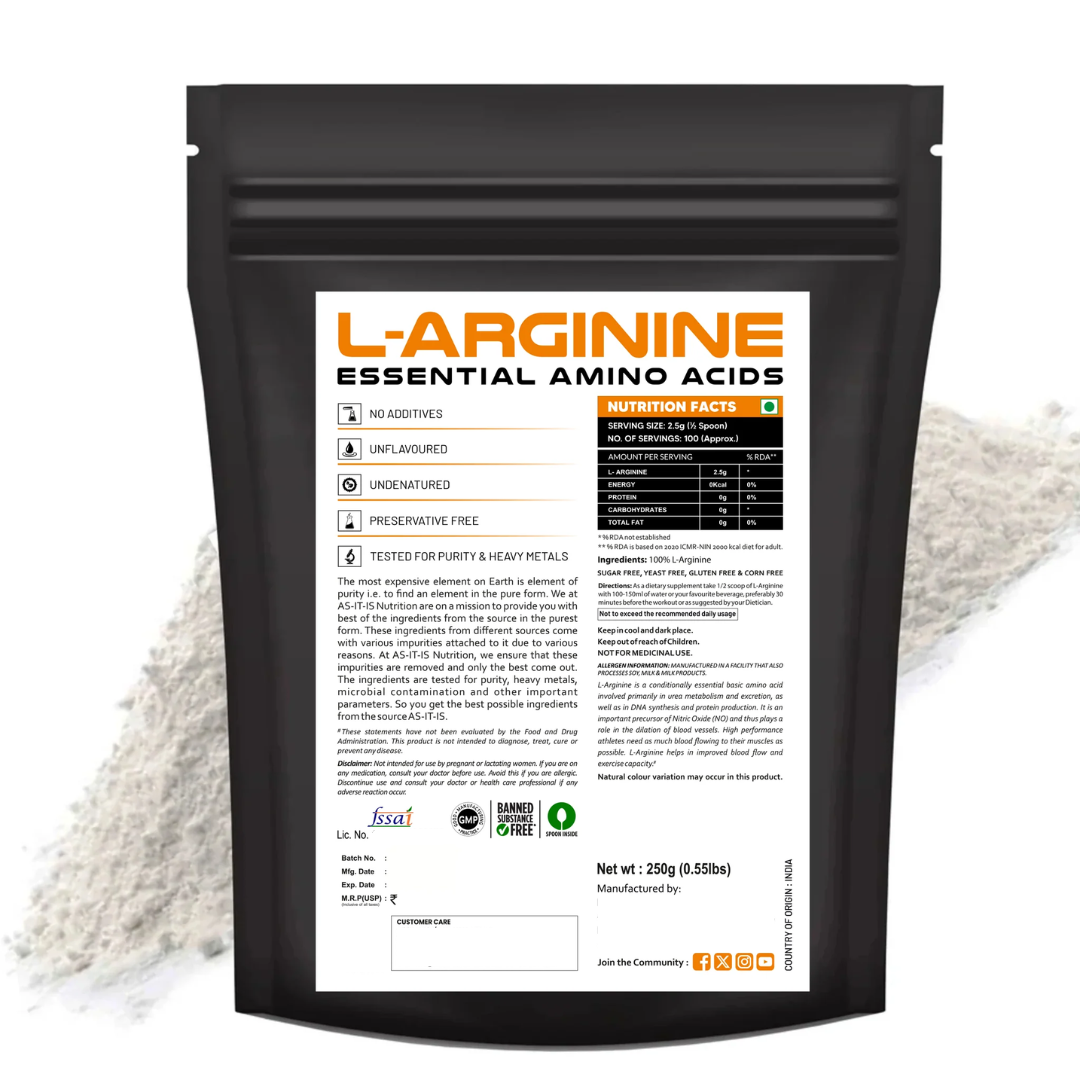 Nutrition Clinic L-Arginine is a 100% vegetarian, unadulterated amino supplement that keeps an authentic single-ingredient amino profile by offering exactly what’s on the label. The gluten-free, DOPE-free, dairy-free, soy-free, calorie-free, non-GMO supplement excludes fillers, additives, colours, and preservatives.